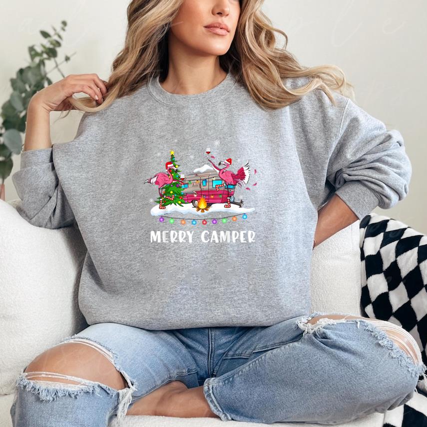 • Camping RV Santa Wine Merry Camper Flamingo Sweatshirt