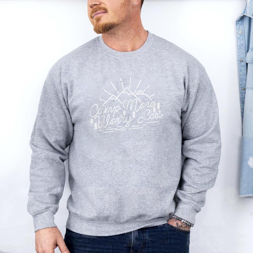 Stay cozy and casual with the Camp More Worry Less Camping Sweatshirt sweatshirt. Crafted from soft heavy blend fabric it is perfect for layering or lounging any time of year