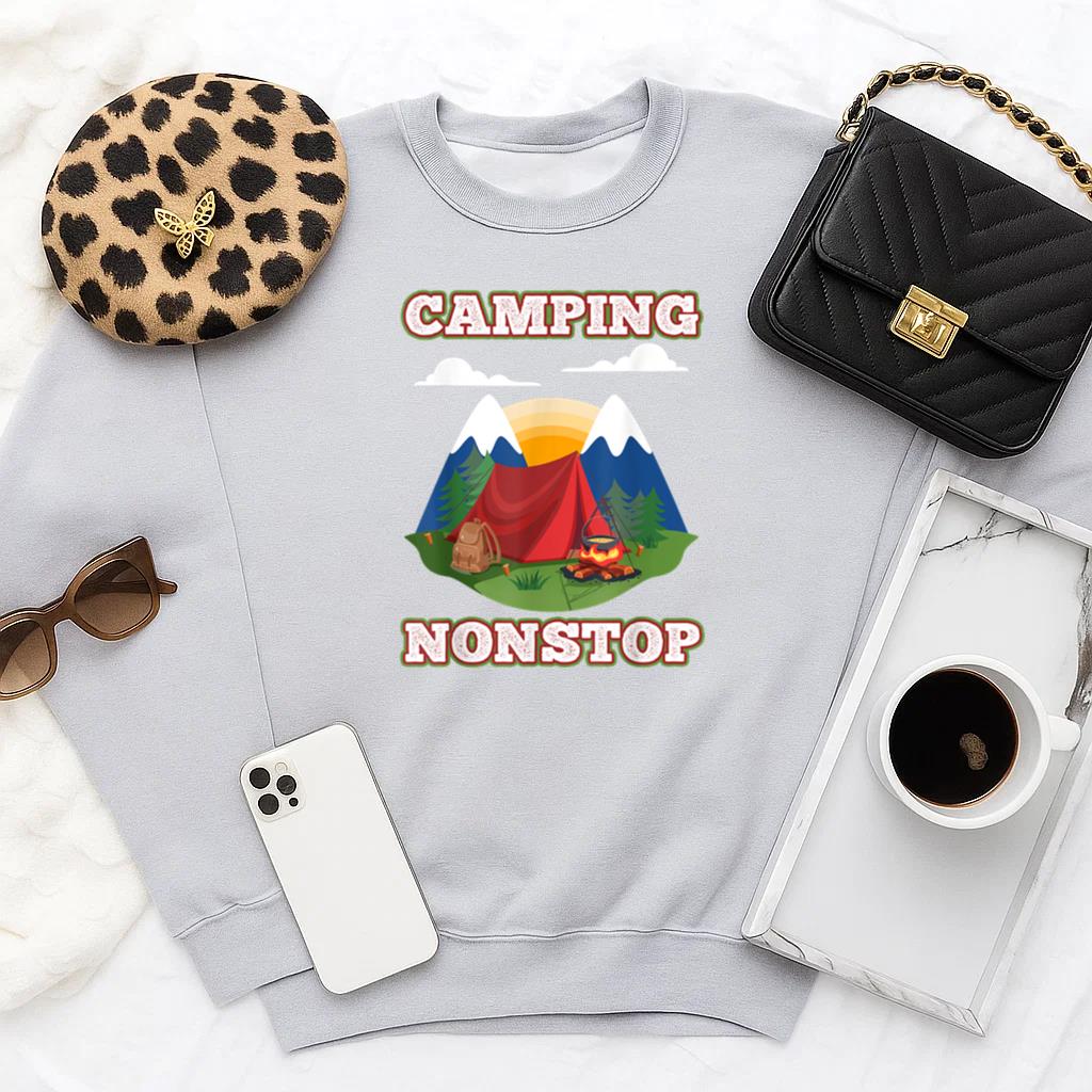 Stay cozy and casual with the Camping Nonstop Sweatshirt sweatshirt. Crafted from soft heavy blend fabric it is perfect for layering or lounging any time of year