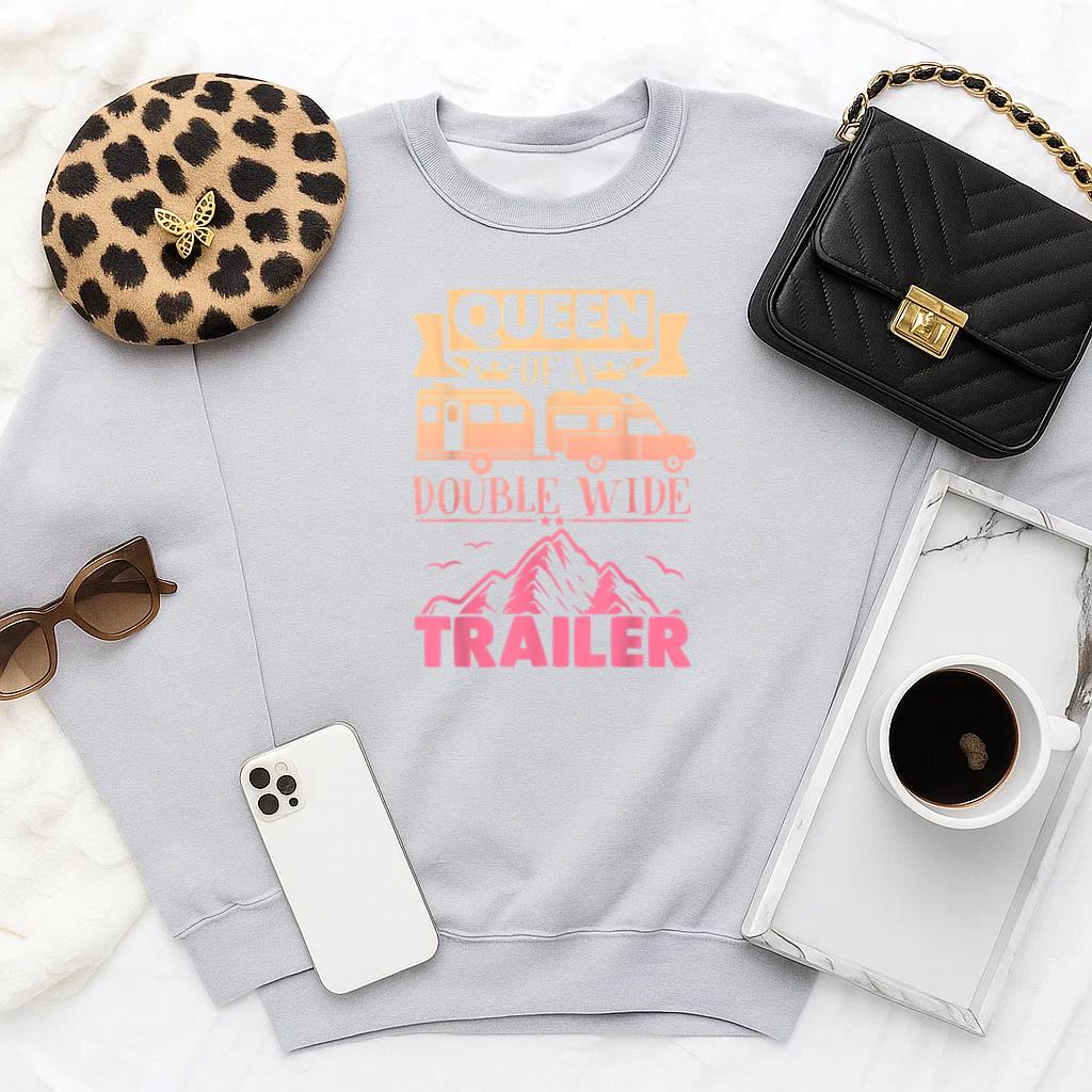 Stay cozy and casual with the Camping Queen Of A Double Wide Trailer Sweatshirt sweatshirt. Crafted from soft heavy blend fabric it is perfect for layering or lounging any time of year