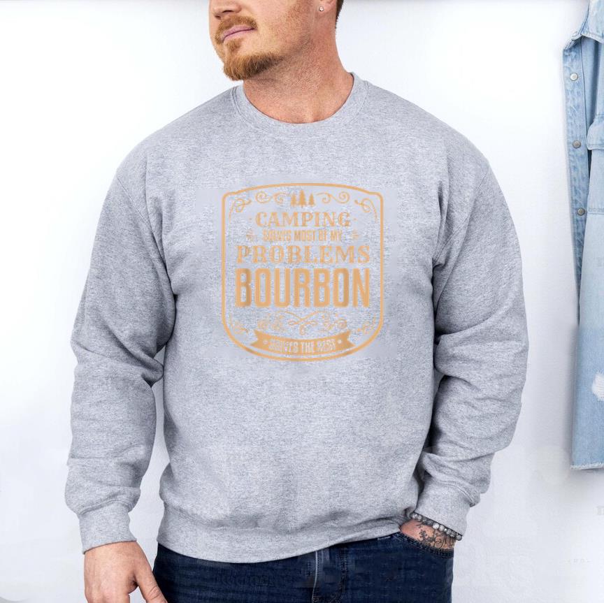 Stay cozy and casual with the Camping Solves Most Of My Problems Bourbon Solves The Rest Sweatshirt sweatshirt. Crafted from soft heavy blend fabric it is perfect for layering or lounging any time of year